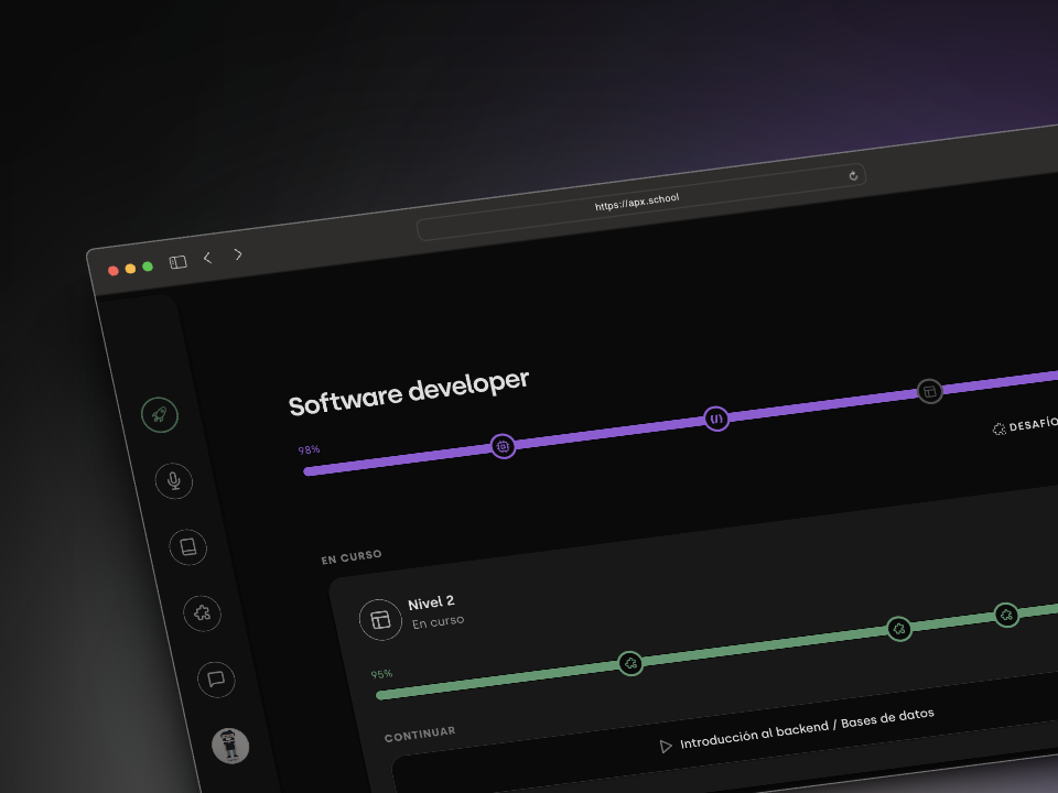 El objetivo principal de la propuesta de apx.school es que, al finalizar el cursado, les estudiantes tengan un portfolio con varios proyectos terminados y en funcionamiento. En el mundo de la tecnología, esta es la carta de presentación fundamental para acceder a un trabajo.