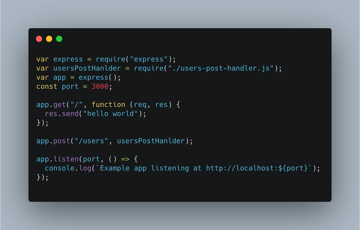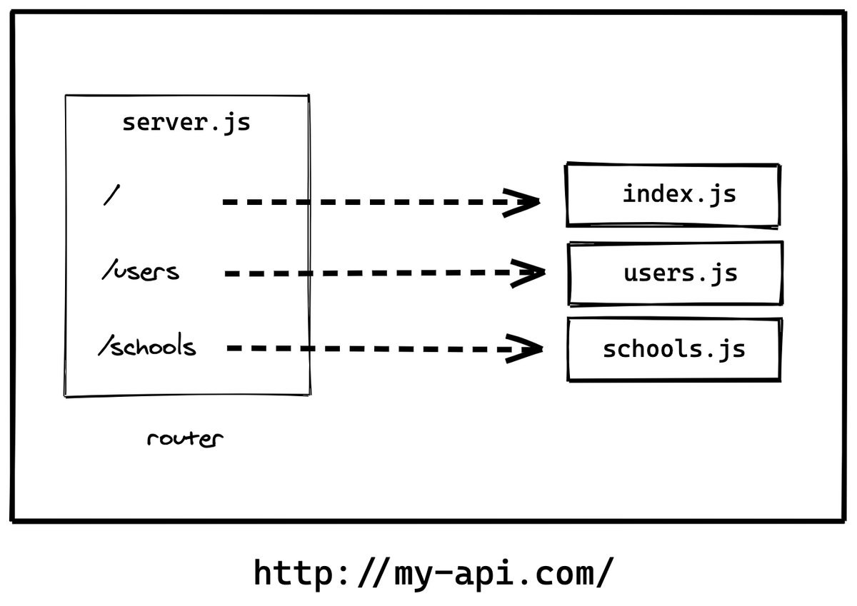 O sea que todo el servidor es un solo programa, que maneja las rutas, cada ruta a su “handler” o sea a la función o proceso que recibe esa petición y la procesa.