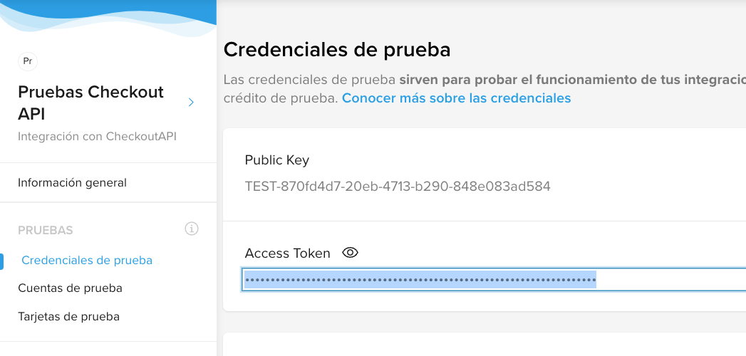 A partir de acá, todo lo que tenga que ver con las interacciones con la API de Mercado Pago va a estar relacionado a esta integración. Para comenzar, vamos a obtener nuestro token de pruebas y guardarlo en una variable de entorno local. Más adelante, cuando subamos todo esto a un ambiente productivo vamos a usar el token productivo.