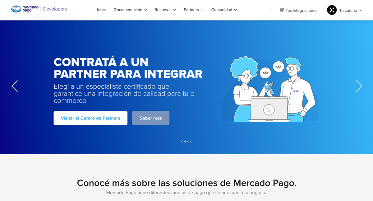 Mercado Pago cuenta con un portal exclusivo para devs donde vamos a poder acceder a la documentación y gestionar todo lo relacionado con la interacción con la API.