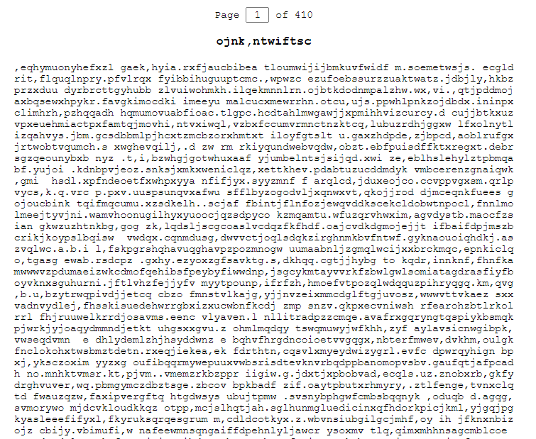 Si tomamos las variables que configura la biblioteca (5 anaqueles, 32 libros, 410 páginas, 40 renglones, 80 letras, no hay dos libros idénticos…) y las utilizamos como datos de entrada para nuestro algoritmo, podríamos asignar a las páginas, según la configuración que nos traza Borges, aleatoriamente letras y signos de puntuación para crear, cada vez, un ejemplar diferente.