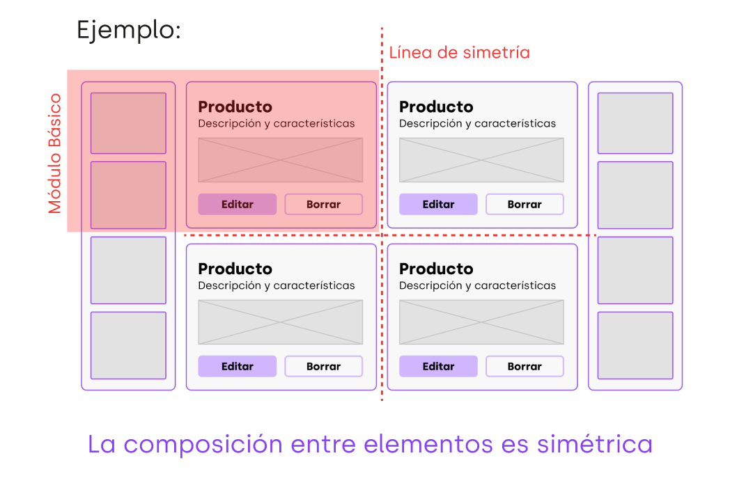 En general las composiciones simétricas son más placenteras visualmente y nuestro cerebro las interpreta como estables, ya que la misma simetría funciona o indica que esos elementos están contenidos dentro de una misma estructura gráfica.