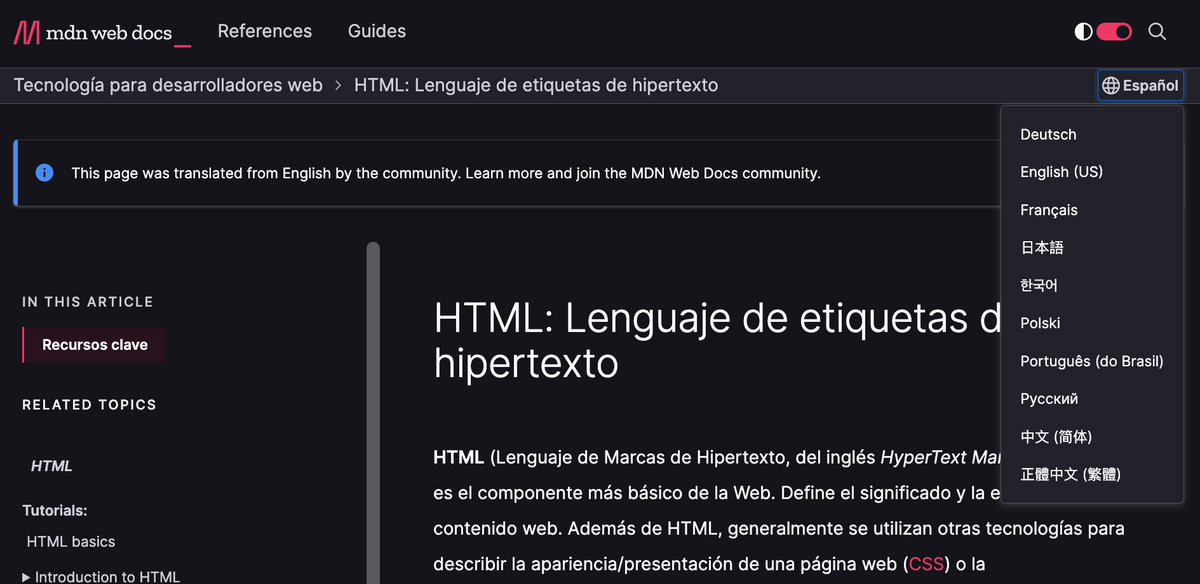 Este es uno de los puntos de partida para empezar a estudiar inglés, ya que hay muy buenas documentaciones, tutoriales y artículos que están escritos en inglés.