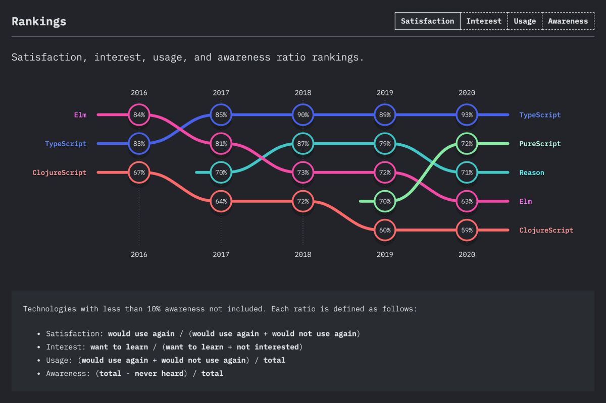 Primero les voy a mostrar los “sabores” más utilizados y que tan contentos están los devs de utilizarlos. Quiero resaltar la popularidad y aceptación de Typescript como un “must have” en nuestra cartera de conocimientos como desarrollador de JS.