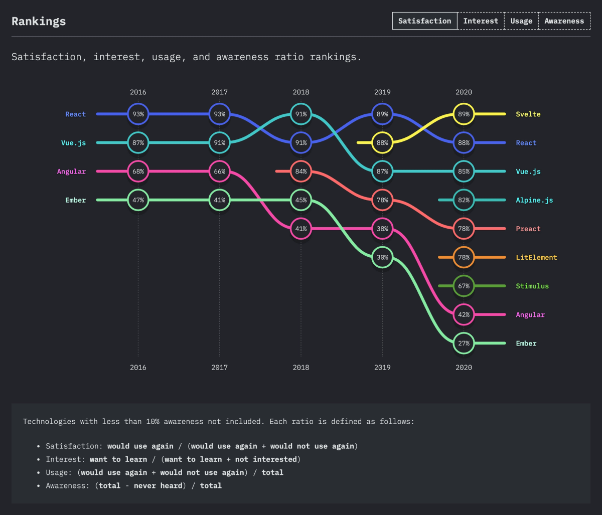 Les dejo el link State of JS, y les dejo unos datos que me resultan interesantes.